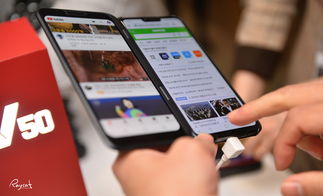 LG의 경우 폴더블폰이 아닌 곧 출시될 LG V50 ThinQ에 액세서리 형태로 보조 디스플레이를 탑재해 선보였습니다.