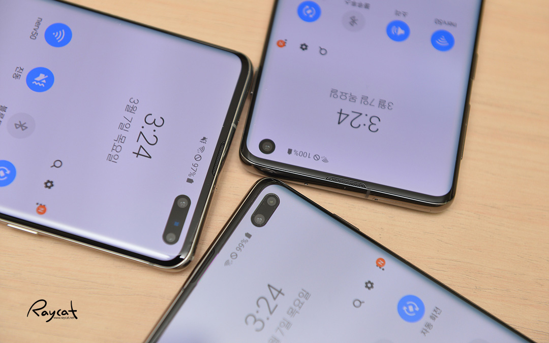 갤럭시 S10 5G와 다른 갤럭시 S10+, 갤럭시 S10을 비교해 보면 이건 단점이라고 이야기 할 수 있는데 다른 갤럭시 S10과 비교해 전면 홀이 넓어서 훨씬 더 눈에 거슬립니다.