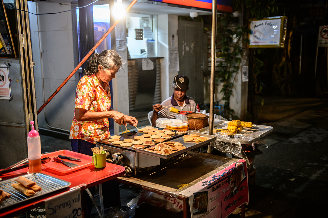 태국에 여행오면 꼭 한 번은 먹는 로띠 이곳에서도 로띠는 가벼운 간식거리이자 가볍게 한 끼 식사를 해결할 수 있는 노점이 많다. 버터를 발라 구운 옥수수도 별미고 바나나에 카카오, 코코넛 가루를 넣어 구운 로띠도 별미다.