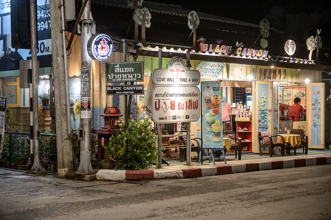 야간에 나오면 가장 먼저 찾아가는 곳은 카페 아니면 식당인데 빠이 나이트 마켓의 블랙캐니언 카페 주로 서양 배낭족들이 많이 오는 카페인데 인터넷도 되고 커피도 맛있다.
