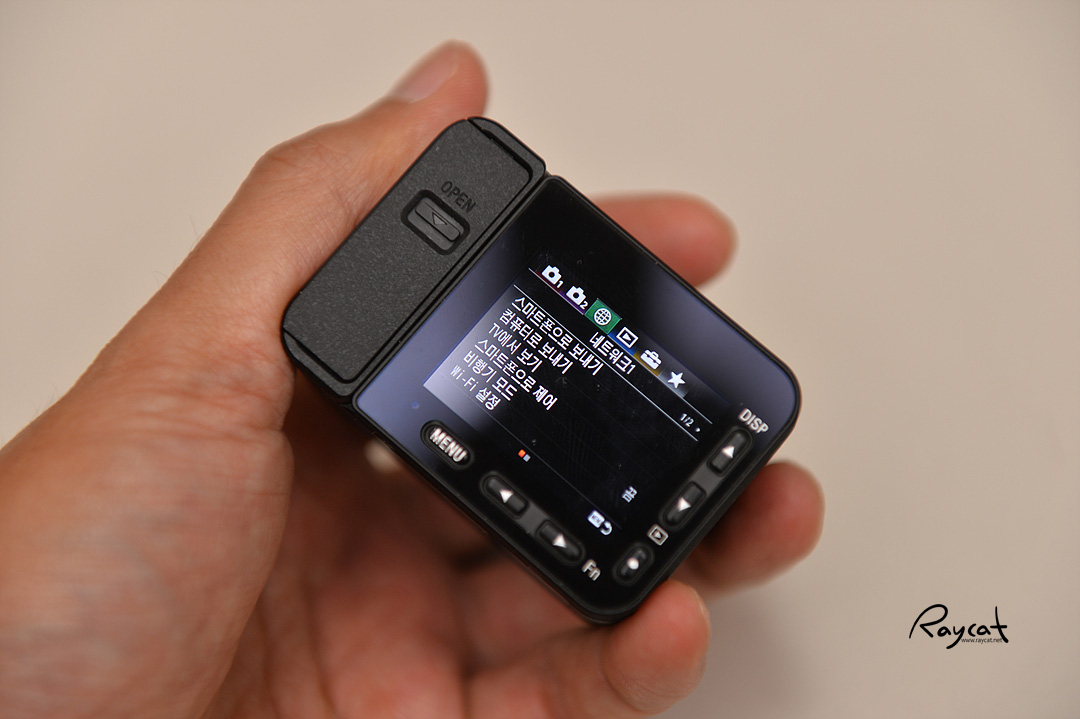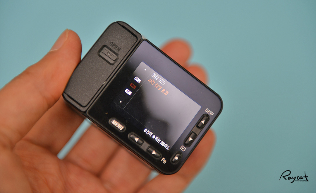 얼굴을 촬영할 때는 편하지만 셀프 촬영이 아닌 다른 풍경이나 움직이는 다른 피사체를 촬영하는 경우 포커스 모드를 바꿔가며 촬영해야 하는데 조작 버튼이 작아서 일단 조작하기가 불편하며 작은 LCD로 포커스를 확인하기도 불편합니다.
