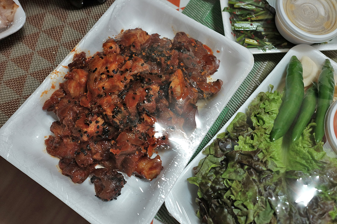 당일 삶아서 판매만 하는 집이라 일단 고기가 맛있습니다. 일반 족발과 양념한 불족발 반반 족발을 가져왔는데 불족발의 경우 꽤 매우니 매운 것을 잘 못 드시는 분은 참고하세요.