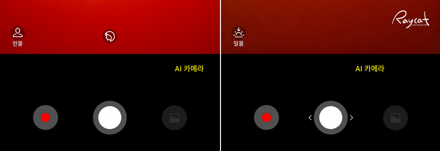 AI 카메라 모드를 선택하면 피사체에 따라 모드가 바뀌는 것을 확인할 수 있습니다.