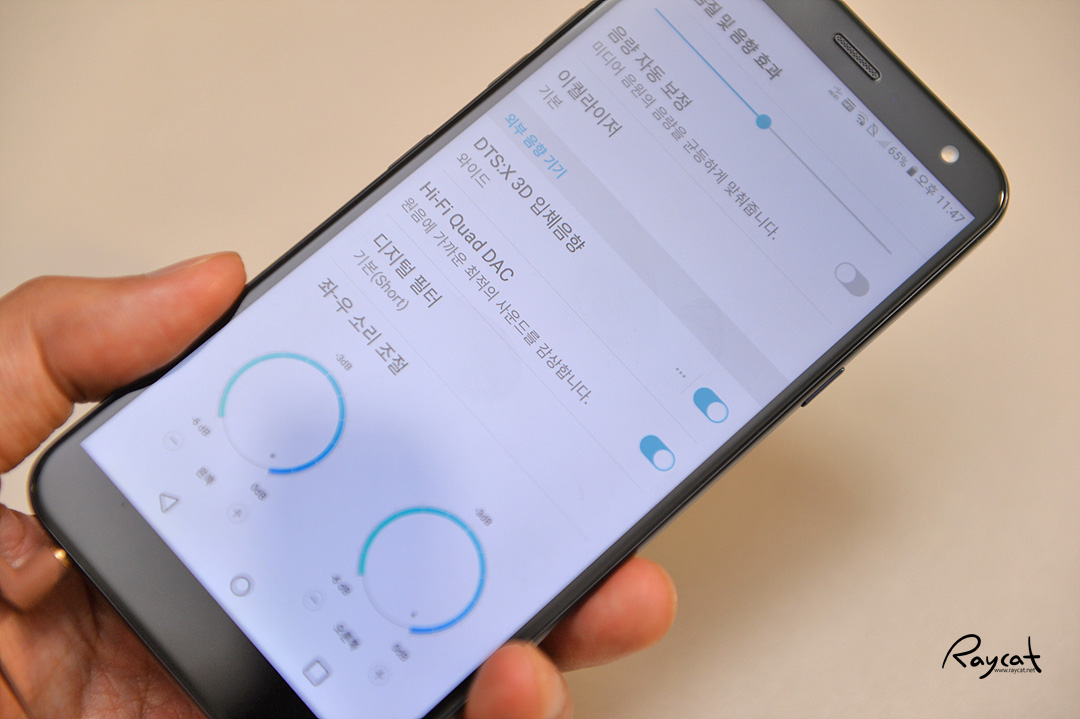 보급형 스마트폰이지만 플래그십 스마트폰에만 들어가는 쿼드 DAC를 탑재 DTS:X 3D 입체음향을 구현했으며 사운드 기능 자체는 플래그십 스마트폰과 비교해 큰 차이가 없습니다.