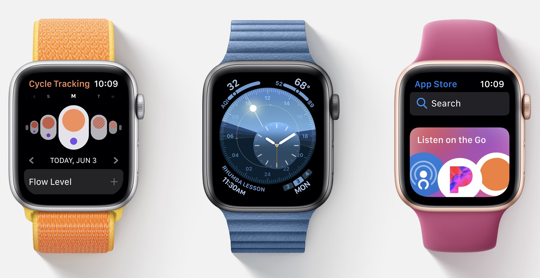 오디오 북, 음성 메모, 계산기 앱 탑재하며 오디오 스트리밍 API 제공하게 됩니다. 더 향상된 건강 및 피트니스 기능과 함께 노이즈 앱은 청력에 영향을 미치는 소음 수준을 안내하며 건강 앱에 기능 향상 등의 변화가 있습니다.
