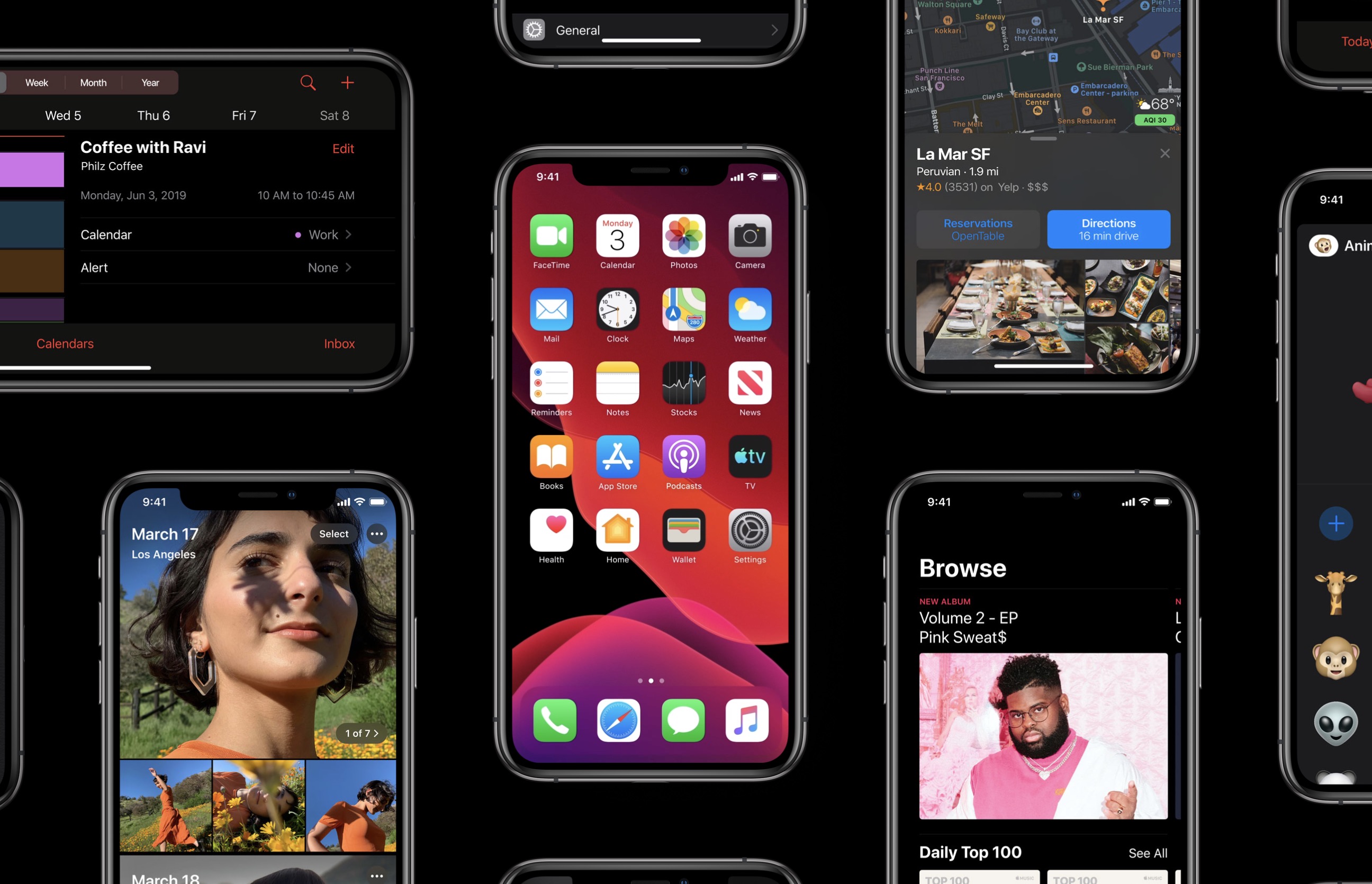 기능이 향상된 카메라와 사진 앱, 조명을 변경할 수 있는 하이키 모노 지원과 새로운 사진 검색 기능 추가 AirPods에서 Siri를 호출하여 메시지를 회신하는 오디오 공유 기능 이용 가능 CarPlay는 새로운 디자인의 달력, 음악, Siri 지원하게 됩니다.