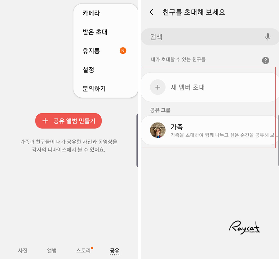 갤러리에서 공유 앨범 생성 후 공유할 사람을 초대하면 공유받은 사람도 내 갤럭시 S10 공유 폴더에 있는 사진이나 동영상을 자신의 스마트폰으로 바로 확인할 수 있습니다.