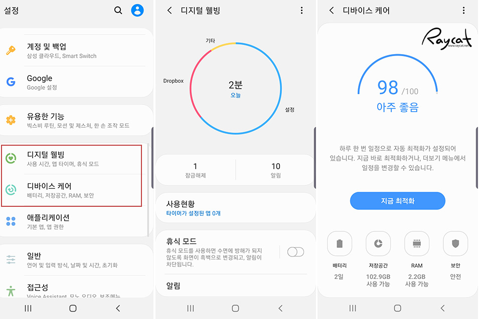 갤럭시 S10 디지털 웰빙, 디바이스 케어