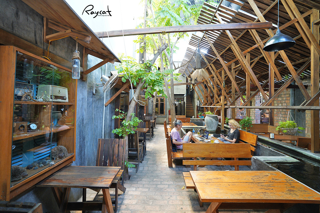 나트랑 안 카페(2호점)도 1호점과 비슷하게 내부가 목재로 마감 되었고 여기 탁자나 의자들이 손으로 만든 것으로 문짝이나 가구와 같은 것들을 재활용해 탁자와 의자를 만들었습니다. 아마 카페 주인이 목공예가 이거나 이런것에 관심이 많은 건축가가 아닐까 하는 느낌이 들더군요. 안 카페 1호점 옆에 이런 탁자와 의자를 만드는 목공 작업실이 있습니다.