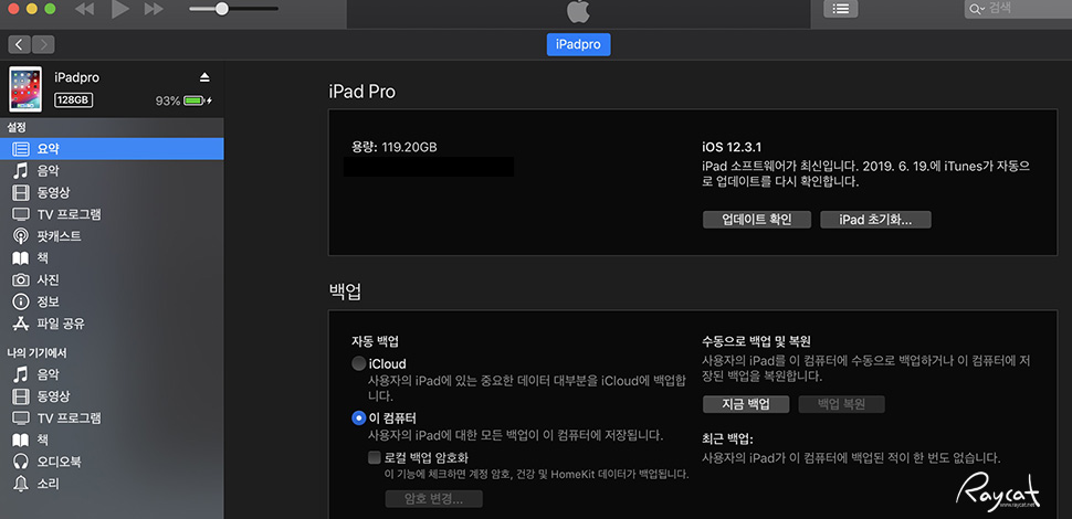 1. 업데이트하려는 아이패드를 먼저 아이튠즈에서 백업합니다.