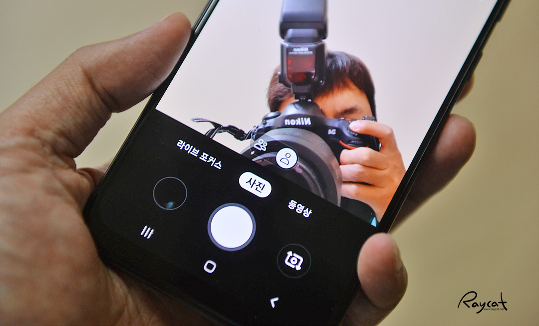 카메라 메뉴는 기존 갤럭시 s10과 같으며 초광각, 일반 화각만 적용되어 있으며 빅스비 비전도 적용되었으며 심도 카메라가 있기 때문에 라이브 포커스 사용 시 아웃포커스 기능도 갤럭시 s10과 비슷합니다.