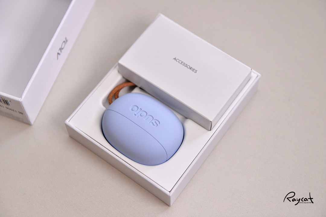 박스를 열어보면 파스텔 블루 케이스가 보입니다. 은은한 블루 느낌의 컬러로 액세서리 박스와 함께 이어폰 케이스가 들어 있습니다.