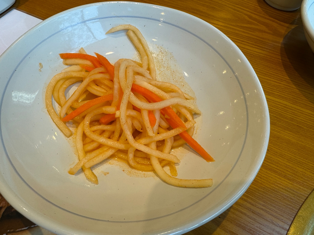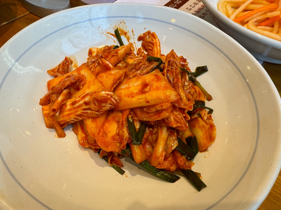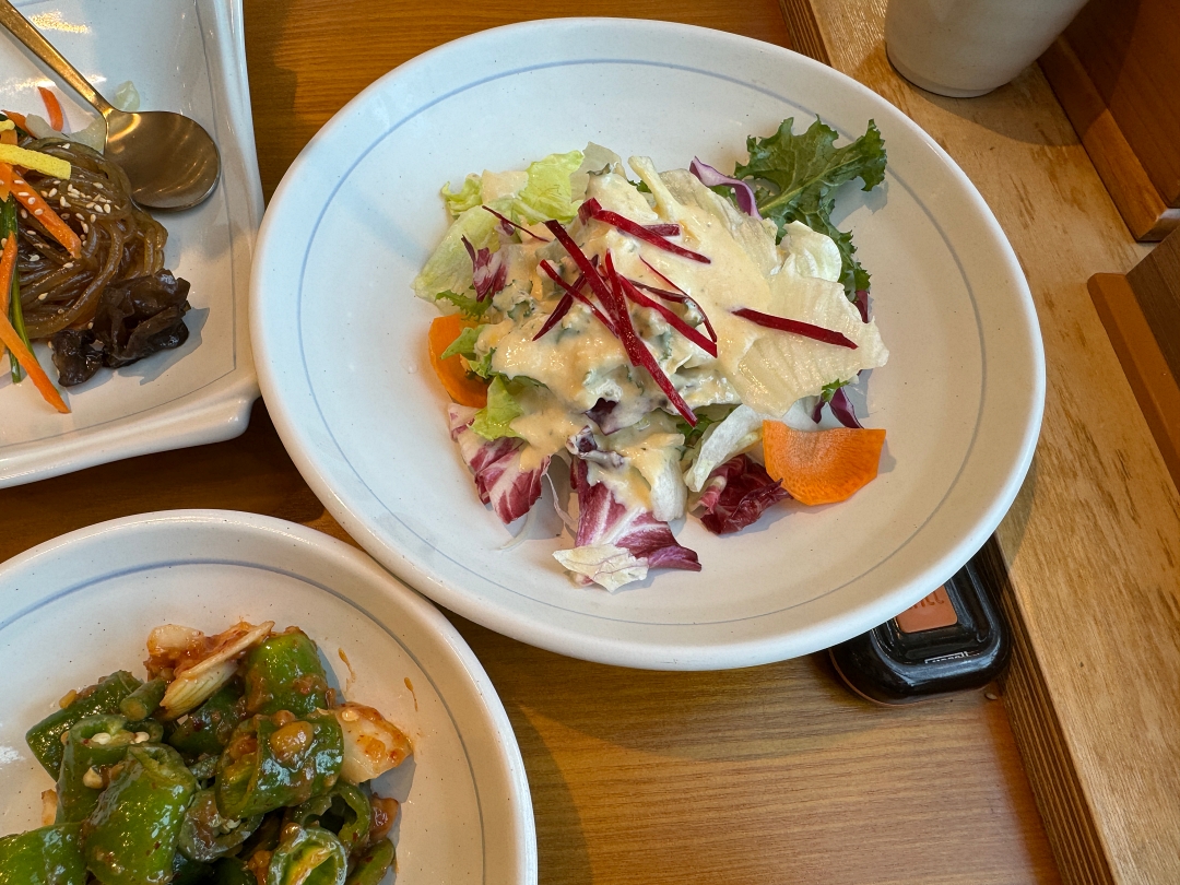 기본찬으로 간단하게 샐러드, 잡채, 무생채, 김치등이 나오는데 김치와 잡채가 꽤 맛있다.
