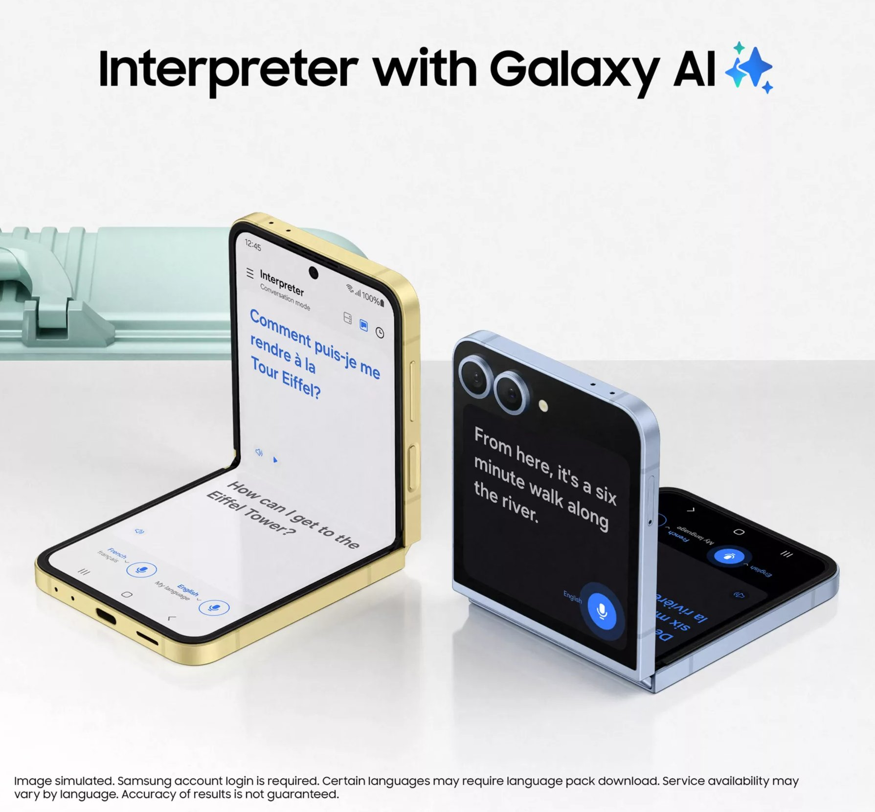 AI 기능을 활용한 번역이나 통역 기능은 커버 화면까지 활용하며 접어서 마이크를 켜고 이야기를 하면 아마 커버 디스플레이에 번역이 되어 보여지고 상대방이 말을 하면 안쪽에 역시 번역되어 보여지는 이미지 연출인것 같습니다.