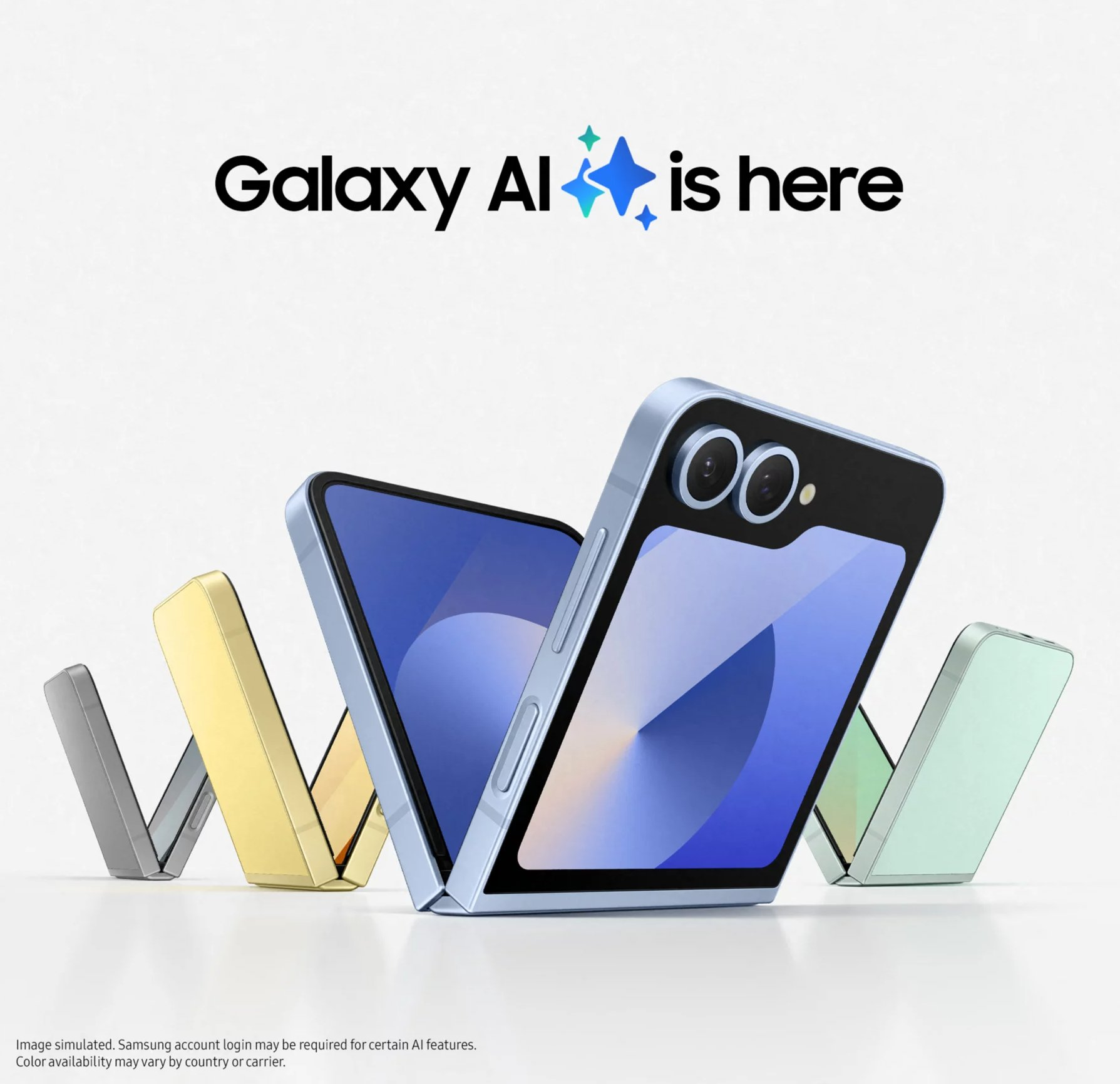 갤럭시 Z플립6의 기본 컬러는 블루, 옐로우, 민트, 실버로 보여지며 디자인은 이전과 비교해 달라진것은 거의 없다고 느껴집니다.