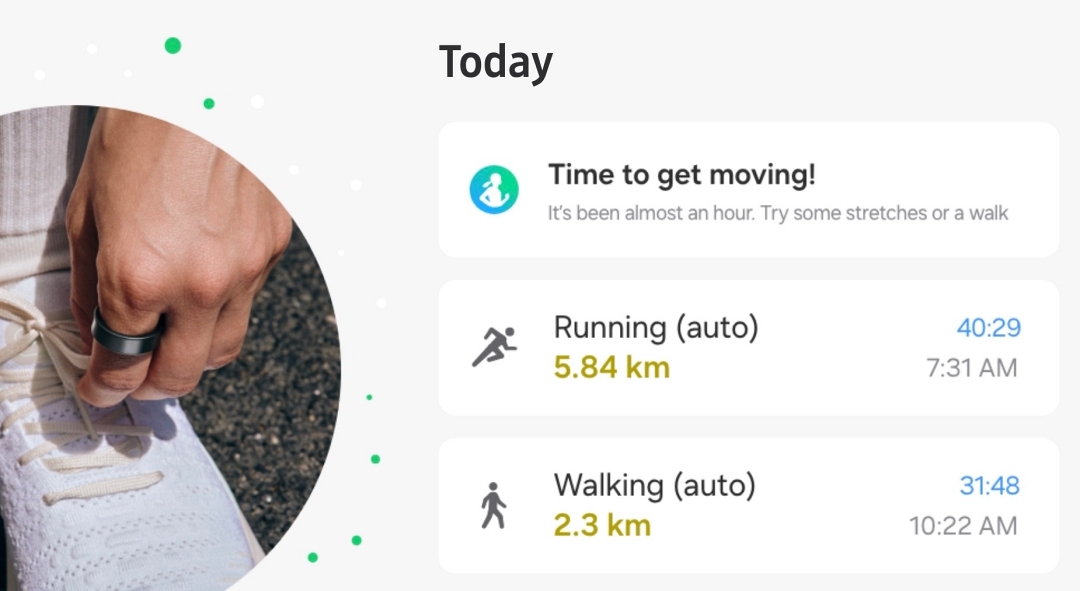 갤럭시 링을 착용한 사용자가 오랫동안 움직이지 않았을 때 목표 달성을 위한 동기를 부여합니다.