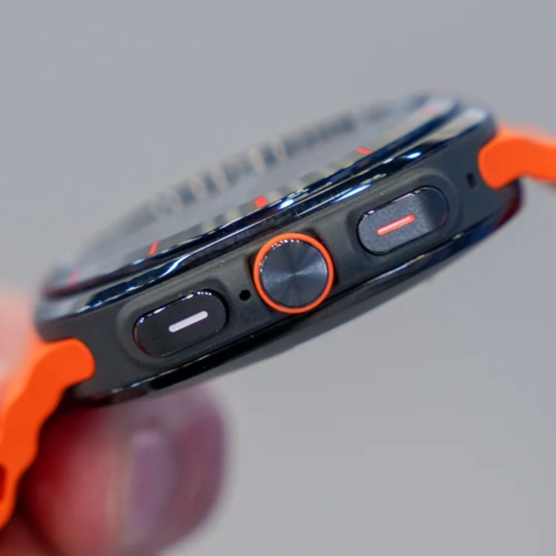 ‘갤럭시 워치 울트라’는 아웃도어 활동에 더 강력한 내구성을 제공하며 강한 충격에 견딜 수 있도록 티타늄 프레임을 적용하고, 10ATM 방수를 지원하고 해발 고도 마이너스 (-) 500미터에서부터 최대 9000미터 높이까지 사용을 지원하고 있습니다.