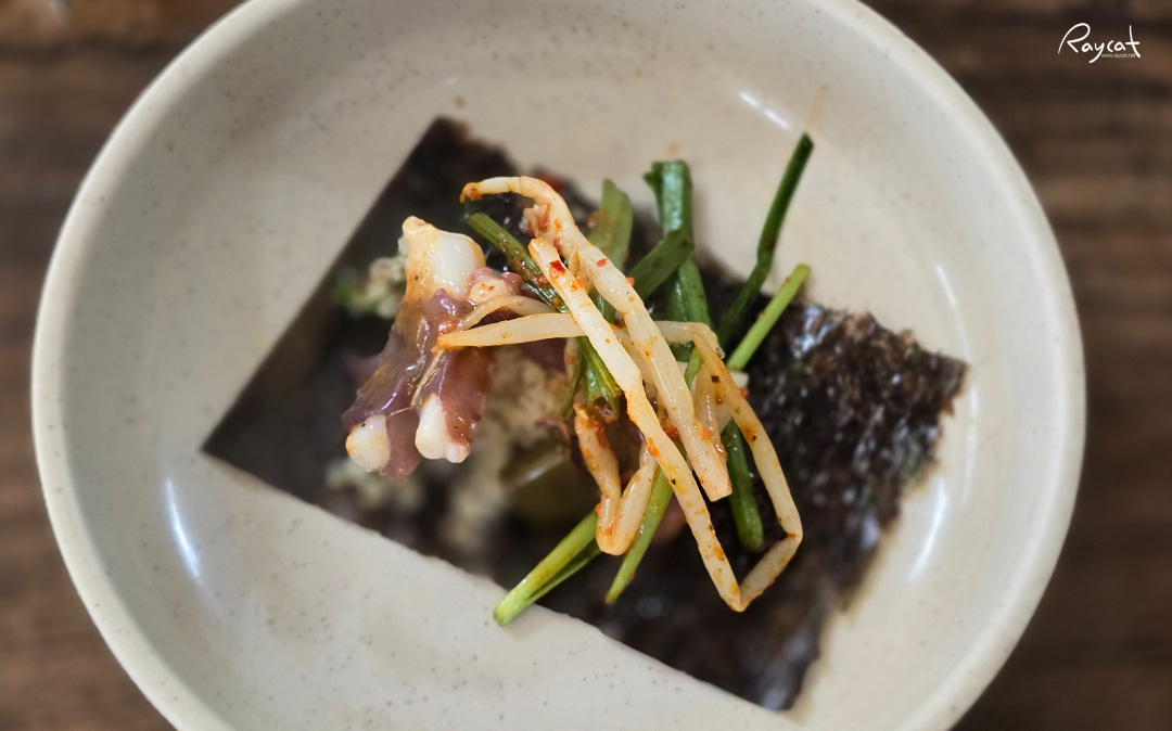 기본으로 나오는 날치알과 계란찜을 제외하고 다른 반찬들은 직접 셀프로 리필이 가능하기 때문에 낙지와 함께 밑반찬을 넉넉하게 놓고 김으로 쌈 사먹듯 김밥처럼 말아먹으면 더 맛있다.