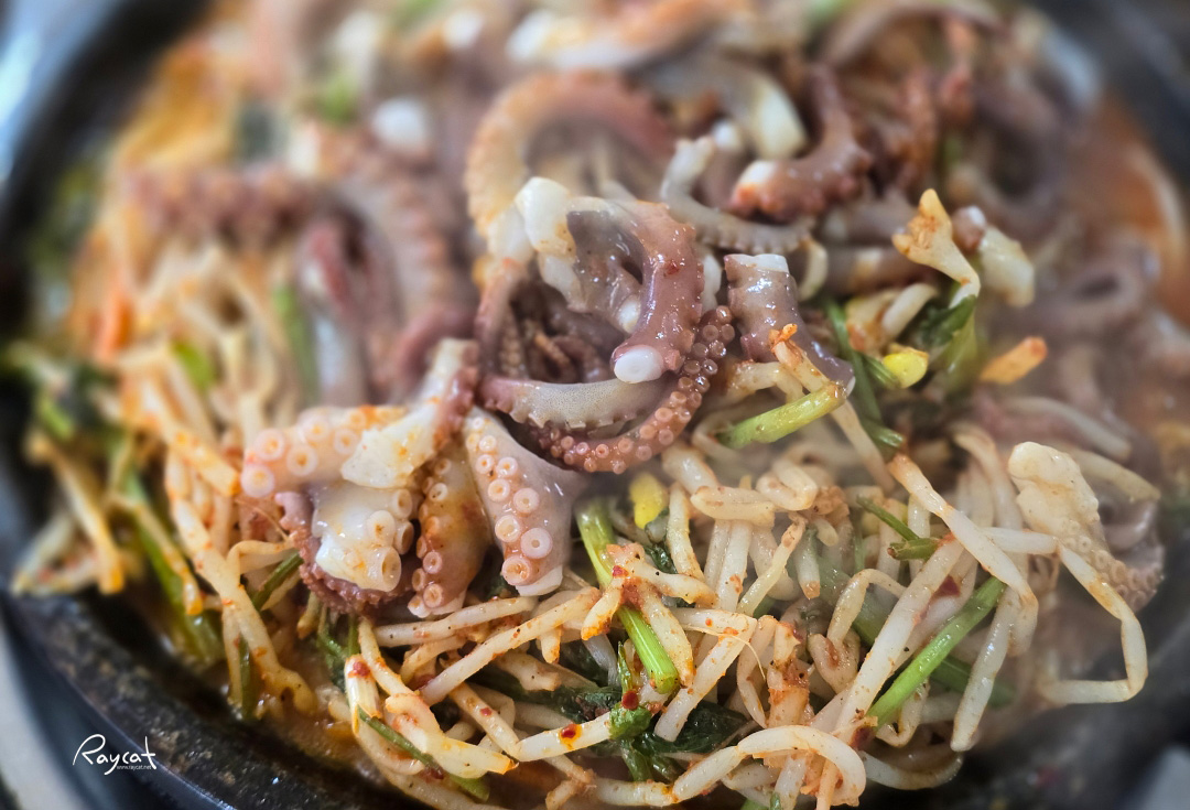 쫄깃한 낙지와 함께 아삭한 콩나물에 부추 그리고 날치알까지 입안에 매콤하게 섞이면 별미가 된다.