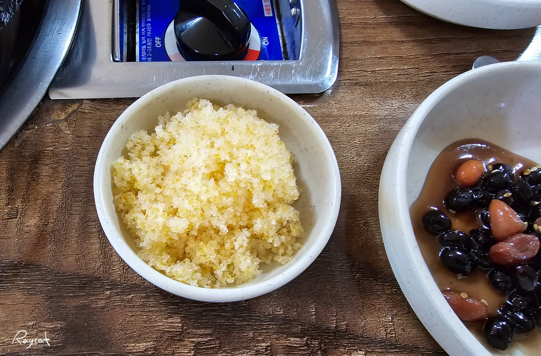 기본으로 나오는 날치알과 계란찜을 제외하고 다른 반찬들은 직접 셀프로 리필이 가능하기 때문에 낙지와 함께 밑반찬을 넉넉하게 놓고 김으로 쌈 사먹듯 김밥처럼 말아먹으면 더 맛있다.
