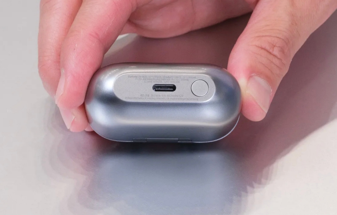 갤럭시 버즈3 시리즈는 모두 충전 케이스 하단부에 USB-C 충전 포트와 리셋 버튼이 있으며 당연히 무선충전도 지원하고 있습니다.