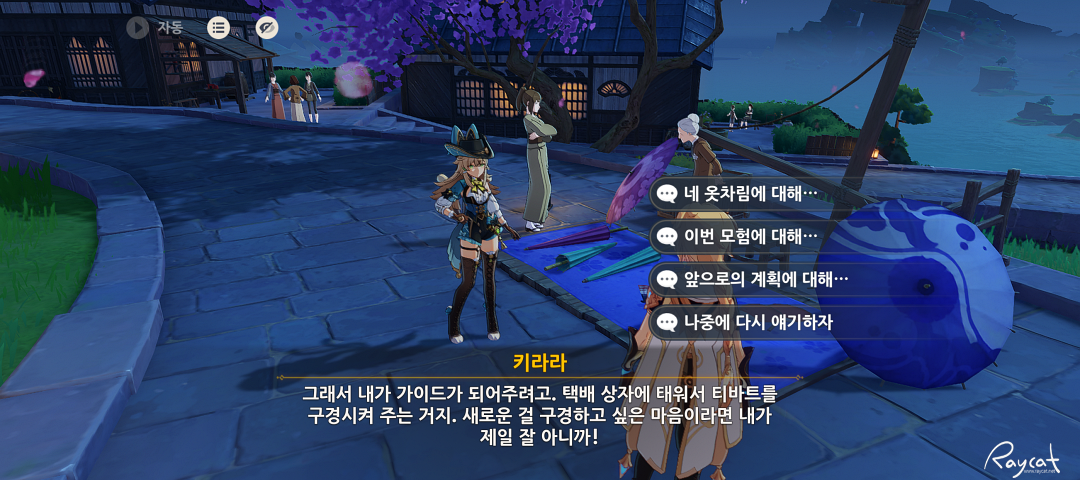 이 셋은 늘 붙어 다니는 느낌인데 치오리, 나비아, 클로린드는 치오리 부띠크 옆 테이블에 함께 앉아서 차를 마시고 있습니다.