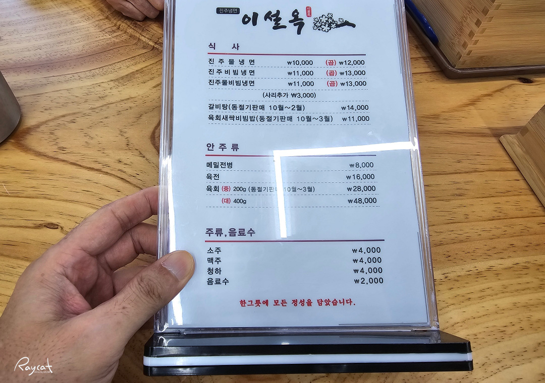 메뉴 : 물냉면(10,000), 비빔냉면(11,000), 물비냉면(11,000)