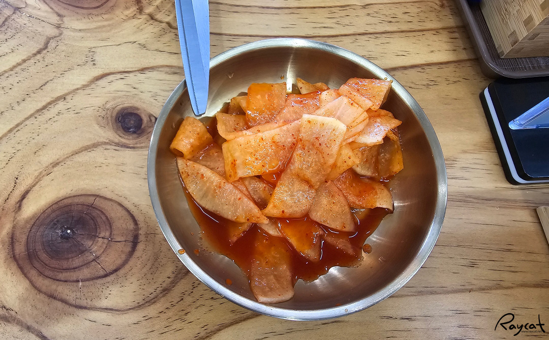 주문 후 조금 기다리면 먼저 무우절임을 가져다준다. 일단 새콤달콤한 무우절임이 꽤 맛있는데 이건 합격 ~
