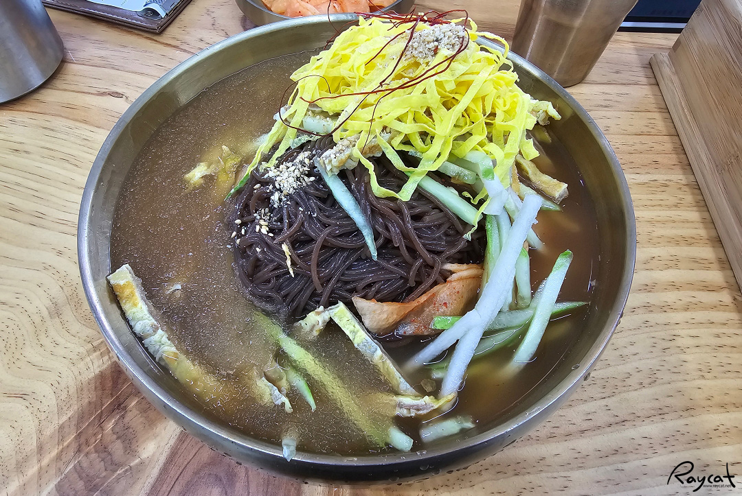 나중에 알았지만 육수는 셀프로 더 가져와 먹을 수 있다. 냉면 육수만 맛보고 싶다면 비빔냉면도 괜찮은 선택일 수 있다.