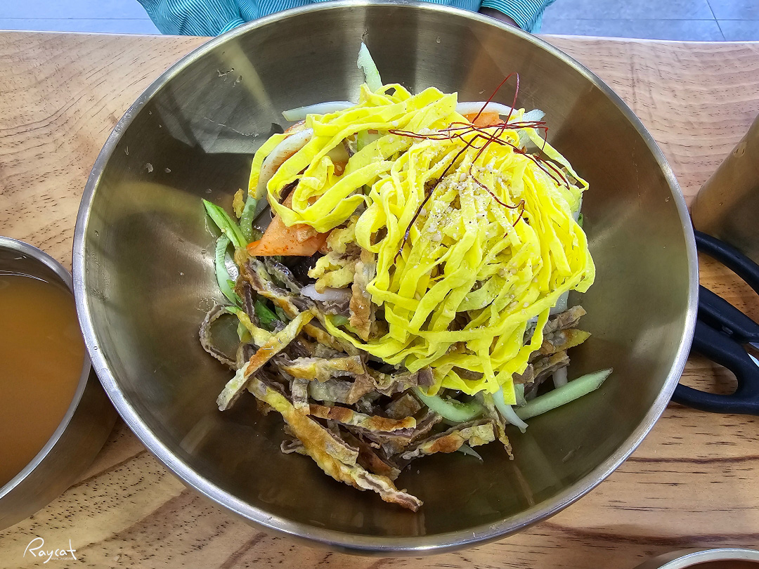 해산물 육수라고 하는데 비릿한 맛은 없으며 육수가 진한 그런 느낌도 아니지만 간얼음 덕분에 시원하고 깔끔한 느낌을 준다.