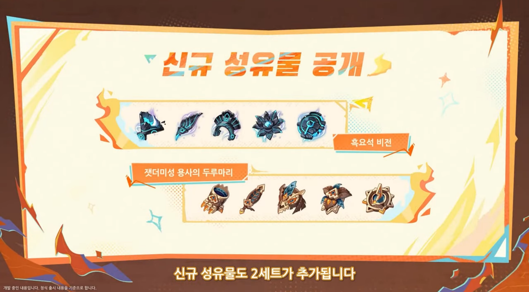 나타 신규 성유물 2종 세트가 추가되는데 이번 신규 캐릭터들이 사용하게 될 것 같습니다.