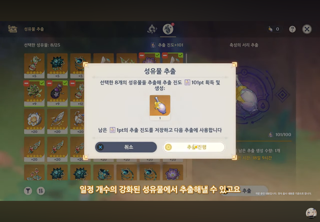 기행에서 새로운 특성 소재를 선택해 획득할 수 있으며 성유물 옵션 변경이 가능한 '축성의 서리'도 기행에서 보상으로 획득할 수 있습니다.
