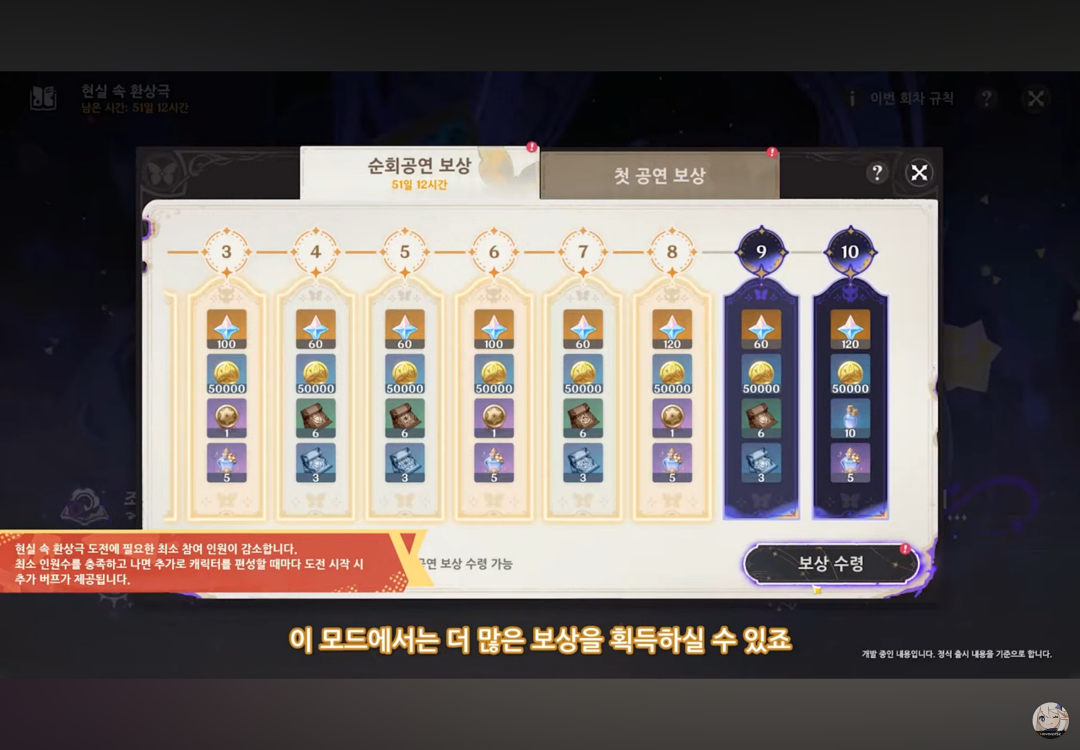 현실속 환상극에 추가된 초월 모드는 상당히 난이도 높다고 하니 5성 캐릭터의 돌파 단계가 중요한 역할을 할 것 같습니다.
