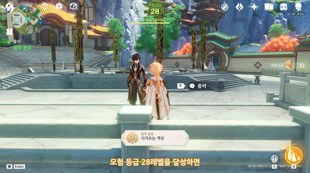 참고로 신규 유저들은 나타로 바로 갈 수 없지만 리월 까지의 마신 임무 '다가오는 객성'을 클리어 하고 모험 등급 28 레벨을 달성하면 나타로 가는 워프가 열립니다.