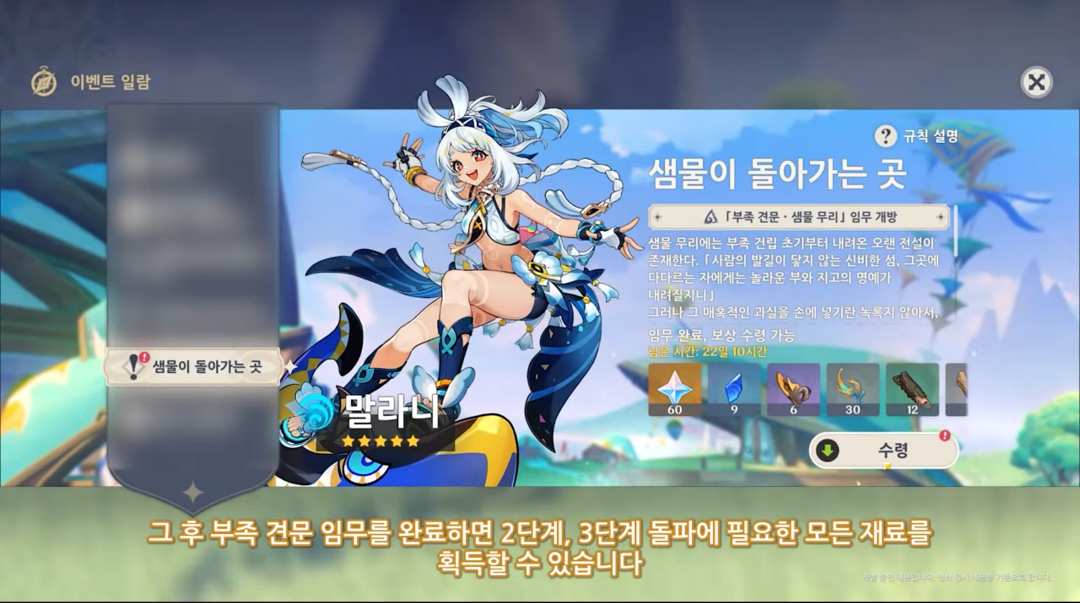 마신 임무외에 5성 신규 캐릭터 말라니와 키니치의 전설임무도 원신 5.0 버전에서 진행됩니다.