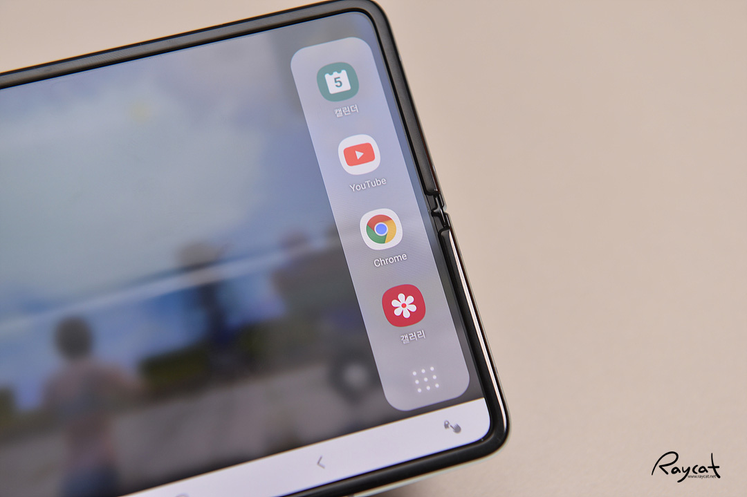 갤럭시 폴드를 펼치면 한손으로 사용하기 좀 곤란한 크기지만 아이패드 미니 같은 태블릿 느낌을 주는데 그만큼 큰 화면은 매력적이기도 합니다.
