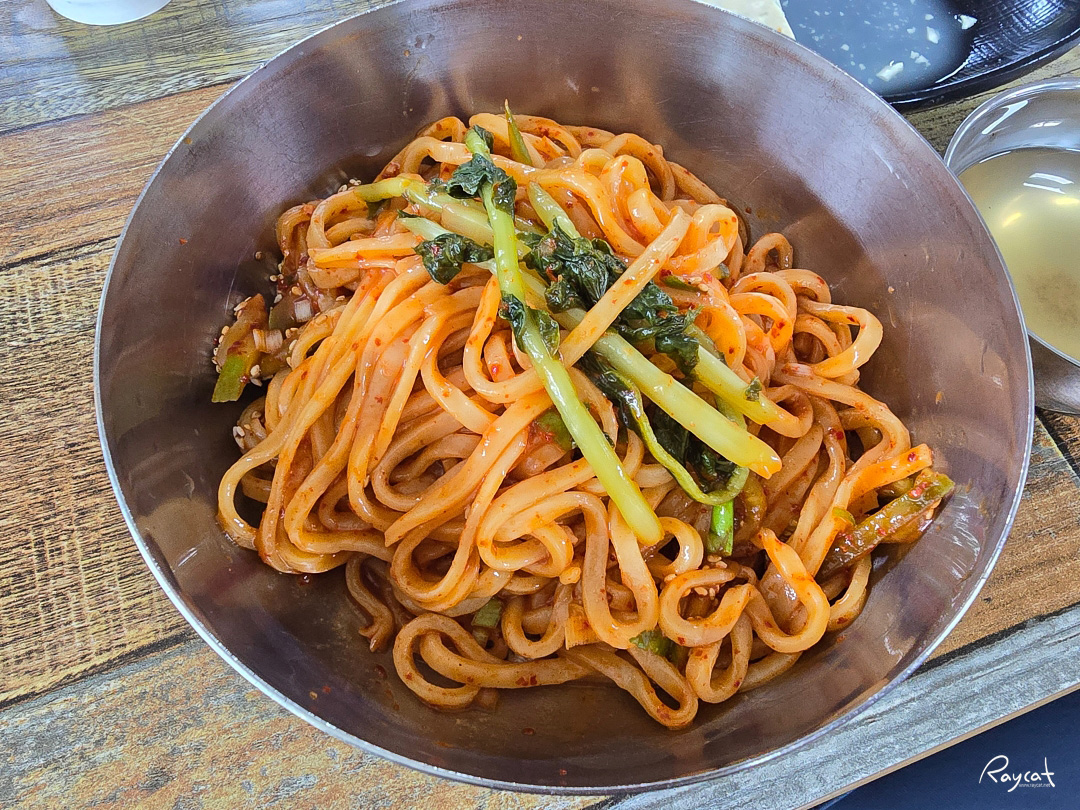 칼비빔국수에 오이, 통깨를 뿌려서 나올뿐 사실 국수에 들어가는 다른 고명은 없는 평범한 국수인데 칼국수면을 사용하고 양념 소스가 맛이 괜찮은 집이다.