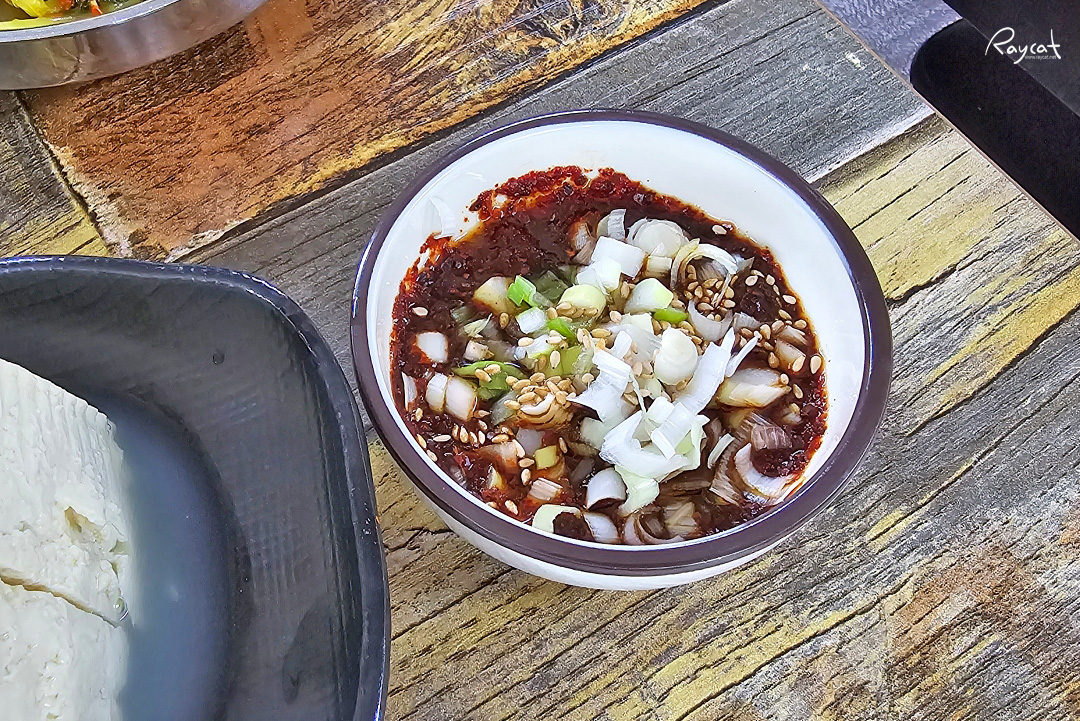 두부는 반모로 따끈한 두부를 이 양념장에 찍어서 먹으면 꽤 맛있는데 이 양념장은 비빔국수에 살짝 한 스푼 넣어서 같이 비벼 먹어도 맛있는데 양념장이 꽤 맛있는 집이다.