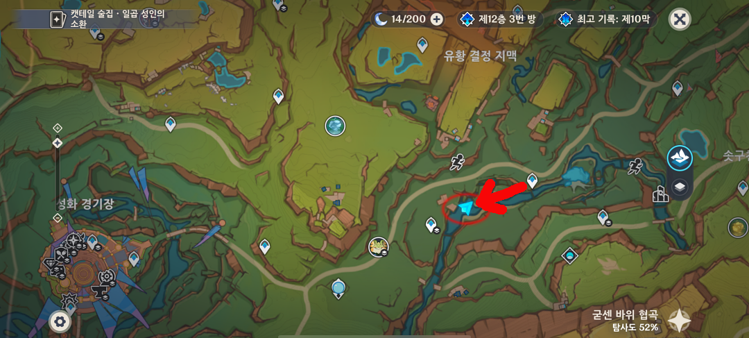 이곳에 가려면 오른쪽 워프를 타고 왼쪽 계곡으로 내려가면 됩니다.(위 지도 참고)