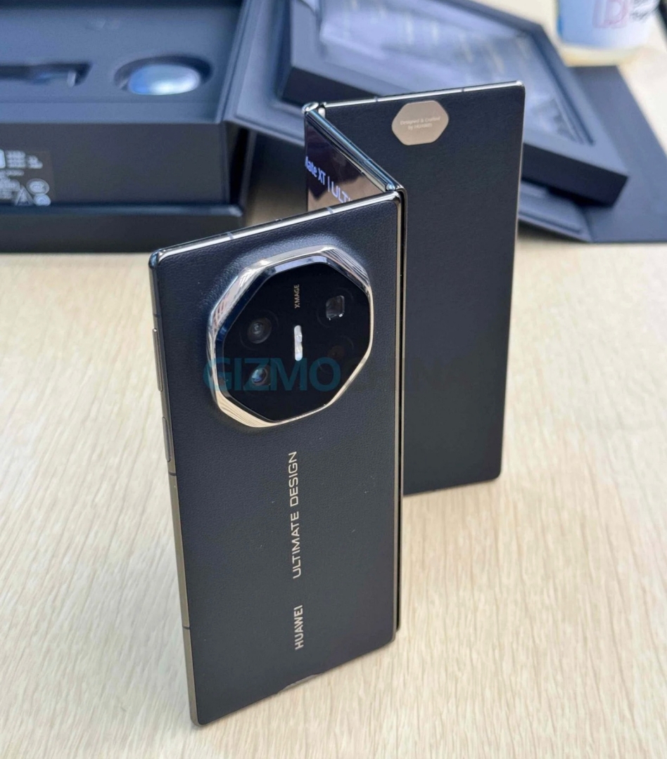 디자인은 조금 글쎄라는 생각이 드는데 후면이 가죽 같은 느낌의 소재로 마감되어 있는데 실제 화웨이 메이트 XT는 금속과 식물성 가죽을 소재로 만들어졌습니다.