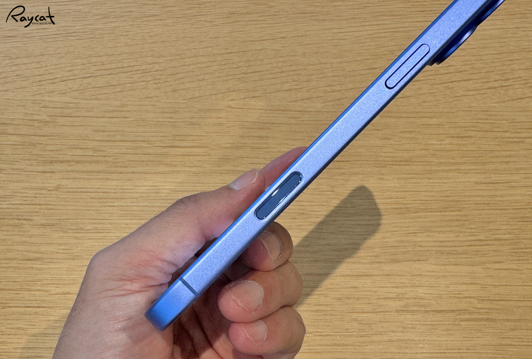 측면을 보면 이번에 아이폰16 일반 모델도 액션 버튼이 추가 되었고 가장 큰 차이는 우측면의 카메라 컨트롤 버튼이라 느껴집니다.