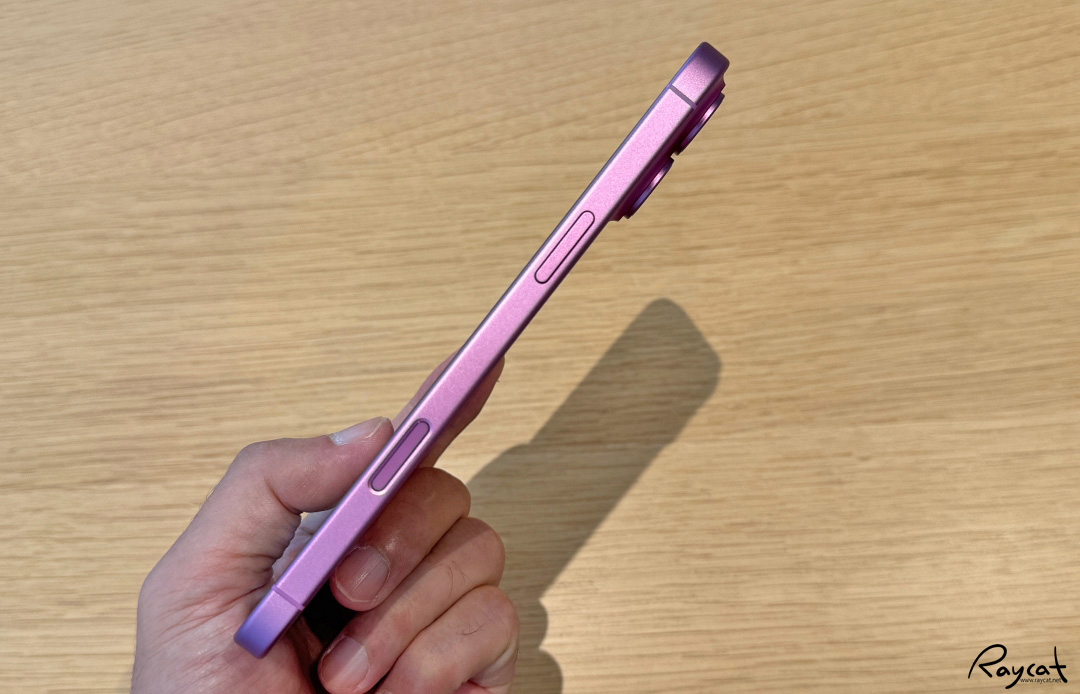 아이폰16 핑크의 경우 측면도 핑크 컬러에 펄이 은은하게 들어가 있어서 후면의 원색과 조금 차이가 있습니다.