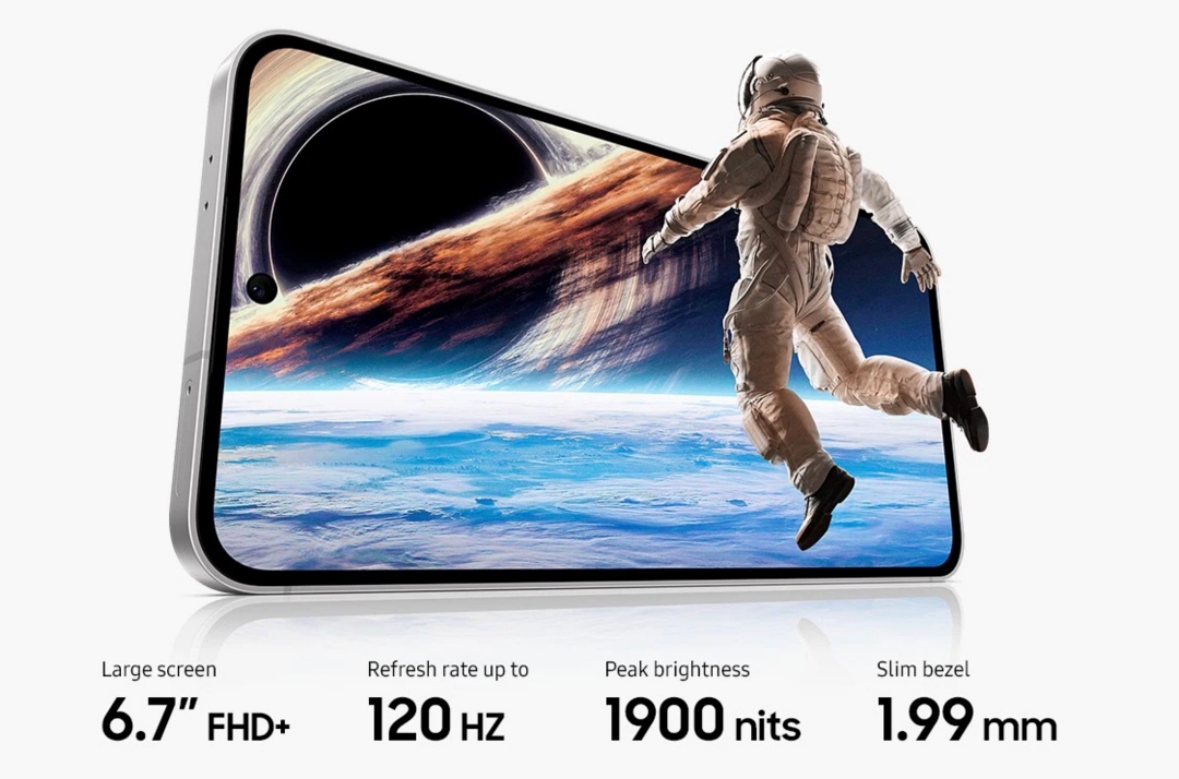 갤럭시 S24 FE는 6.7인치의 FHD+ 해상도에 최대 120HZ 가변 주사율에 최대 1900nit 밝기의 디스플레이가 탑재되었습니다.