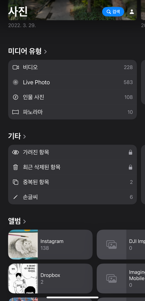 기본 필터링 기능은 잘 활용해도 꽤 편하게 아이폰에 저장한 사진들을 관리할 수 있습니다.