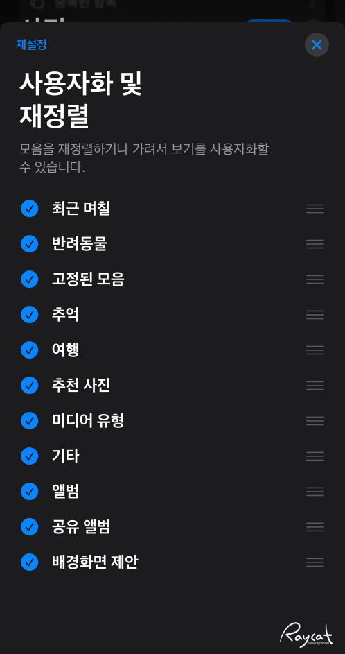 기본 필터링 기능은 잘 활용해도 꽤 편하게 아이폰에 저장한 사진들을 관리할 수 있습니다.