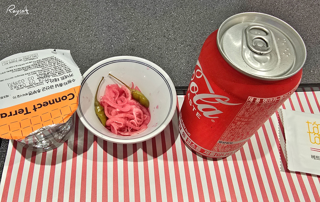 메인 메뉴를 제외하면 절임양파와 물이 나오고 콜라는 내가 따로 주문했다.