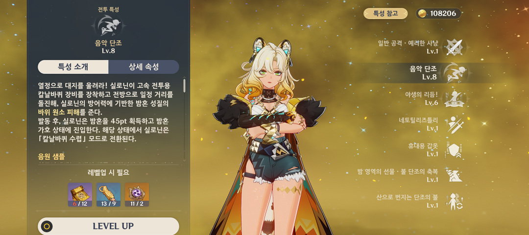 지금 실로닌은 80렙 돌파이며 전용 무기는 90렙까지 올렸는데 특성에 들어가는 모라를 계산 안 해서 지금 모라가 없어서 90렙으로 올리지 못하고 돌파만 한 상태입니다.