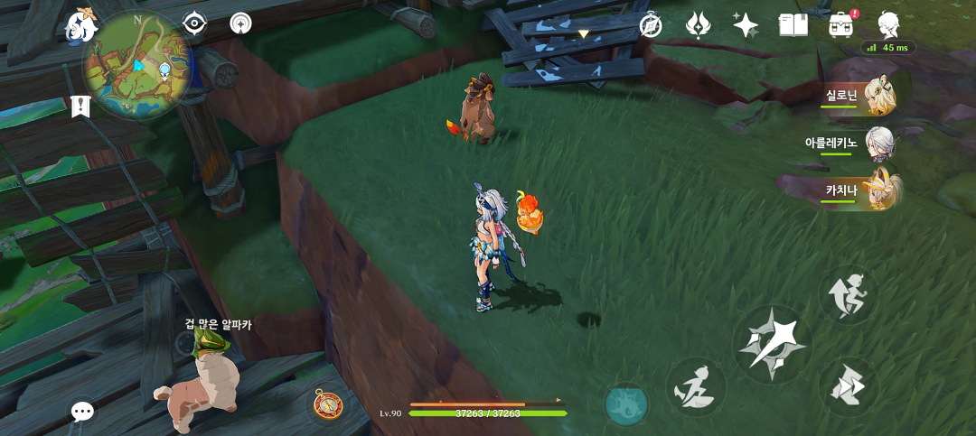 친구 만들기에 실패하고 주변을 보면 절벽 끝쪽에 산룡이 보이는데 꼬마 산룡이 있는 곳으로 달려가면 '겁 많은 알파카'를 볼 수 있습니다.