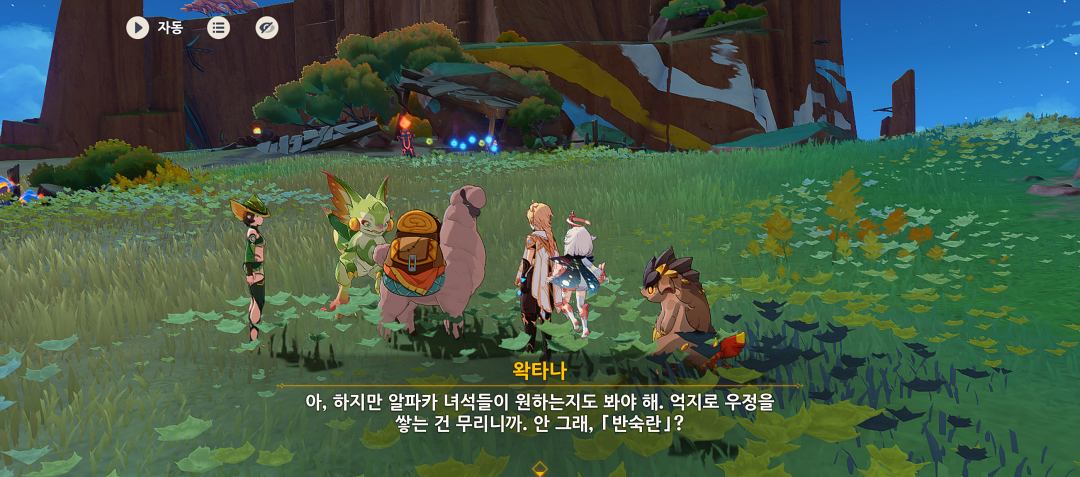 공격하는 숲룡과 전투가 끝나면 '왁타나'가 등장해 현재 상황에 대해 설명해 줍니다.
