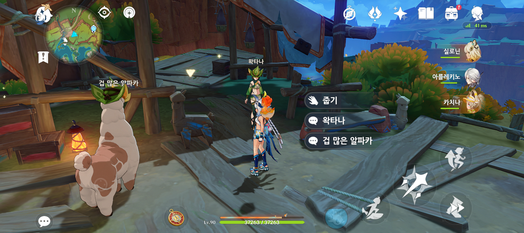 '왁타나'에게 상황 설명을 듣고 3마리의 알파카에게 대화를 시도해 보지만 그들을 친구 만들기에 실패합니다.